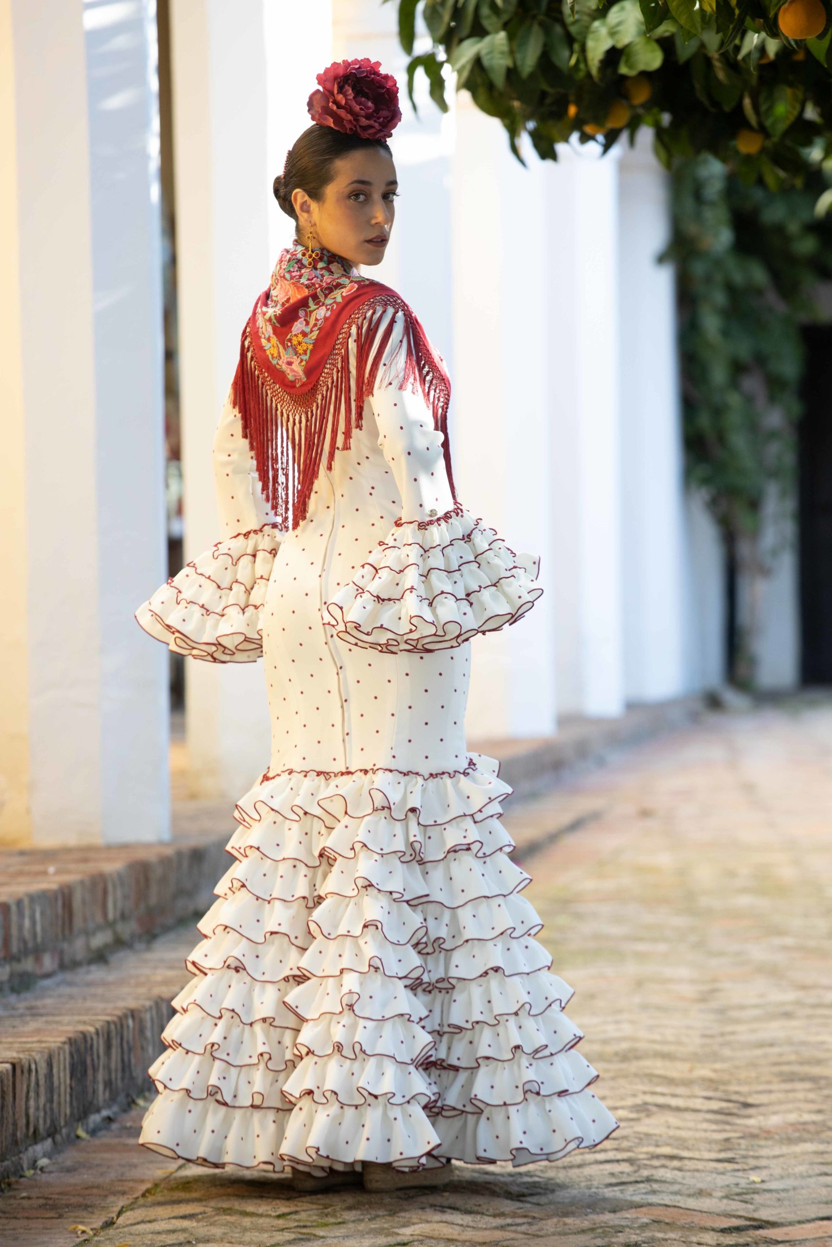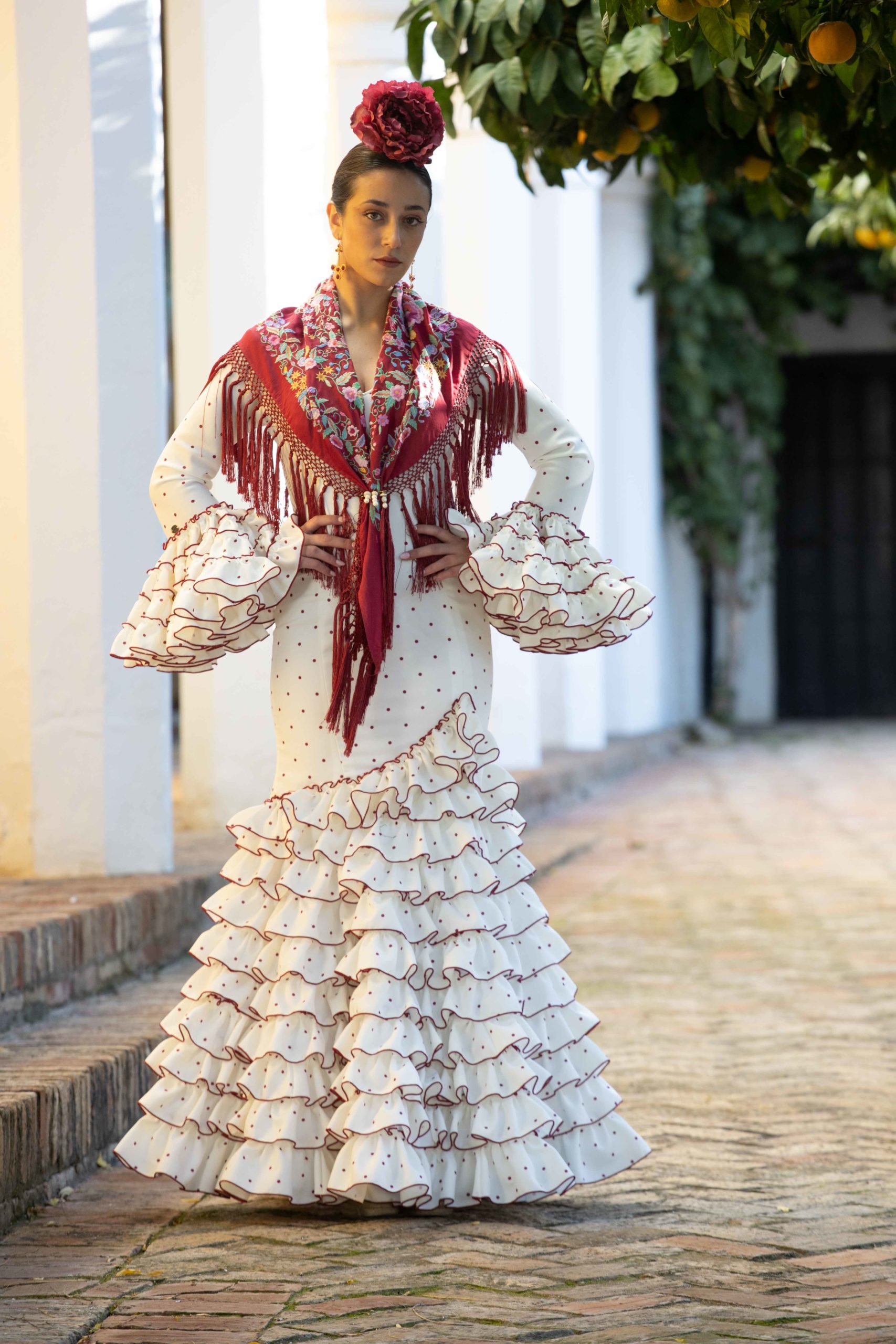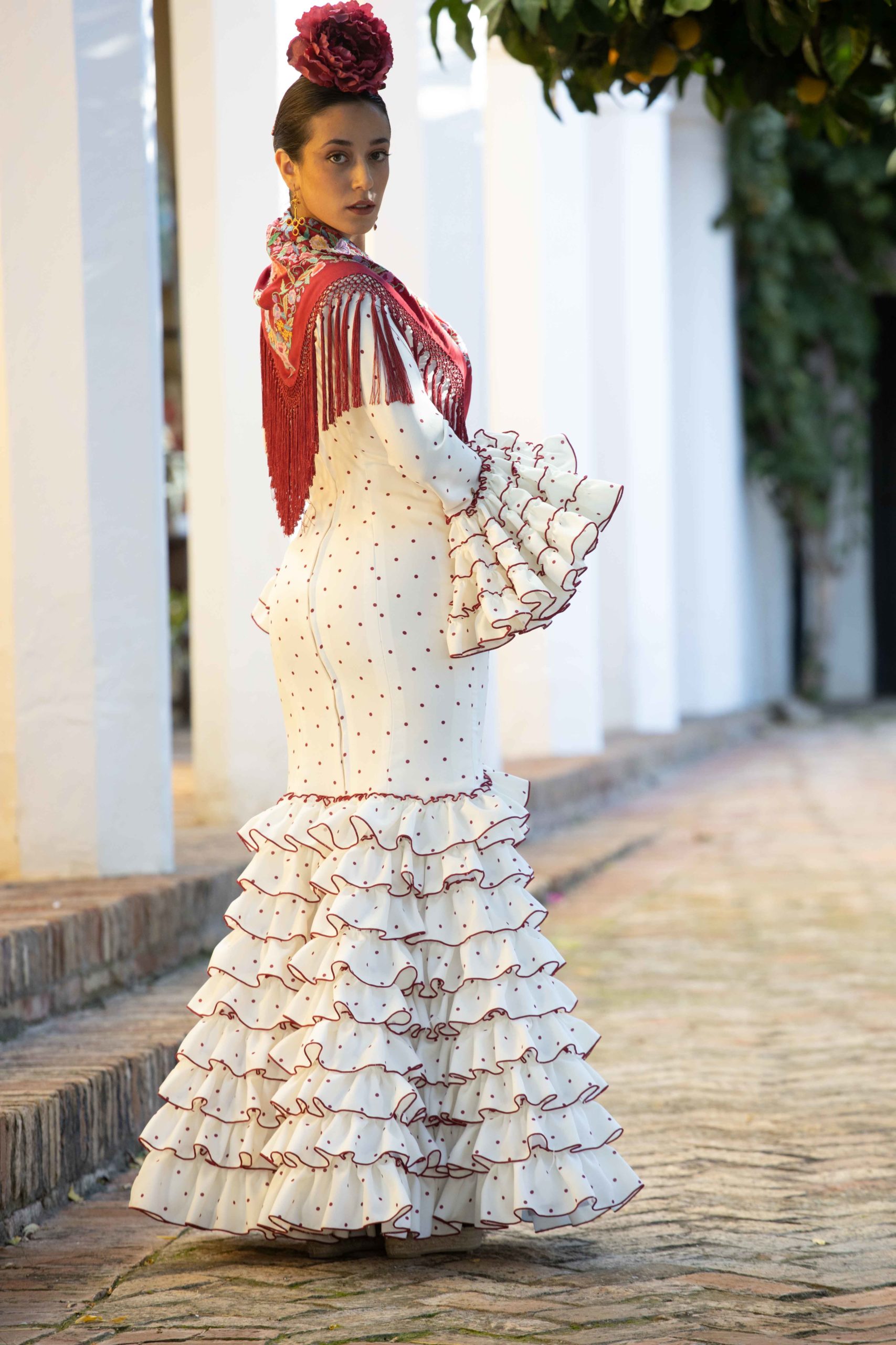 El modelo «Clavellina» es un vestido de flamenca que logra una simbiosis perfecta entre elegancia y funcionalidad. Sus 9 volantes superpuestos, cada uno con unos 7cm de ancho, se unen en una coreografía visual que evoca la gracia de una clavellina en pleno florecimiento. La enagua de cancán estratégicamente ubicada bajo la falda, realza el movimiento característico del traje de gitana, especialmente al bailar. La versatilidad es el sello distintivo de nuestros diseños, con costuras adicionales ocultas bajo la falda que permiten un ajuste personalizado para diversas figuras. Este vestido, con su atención meticulosa a los detalles y su adaptabilidad, refleja la pasión del flamenco con comodidad y estilo.